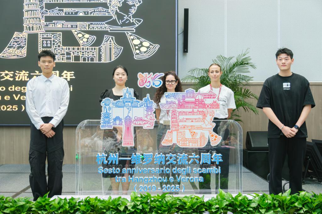 启动仪式上,中意学生代表将象征两国友谊的拼图置入底座。随着绘有杭州地标的“中”字、融入意大利元素的“意”字先后就位,由数字“55”幻化而成的蝴蝶翩然落下——共同构成“中意相融”的完整图景,表达了中意建交55周年的深厚情谊。“中”与“意”相连,也寓意着“喜爱与欣赏”,这正是两校、两市、两国关系的生动写照!