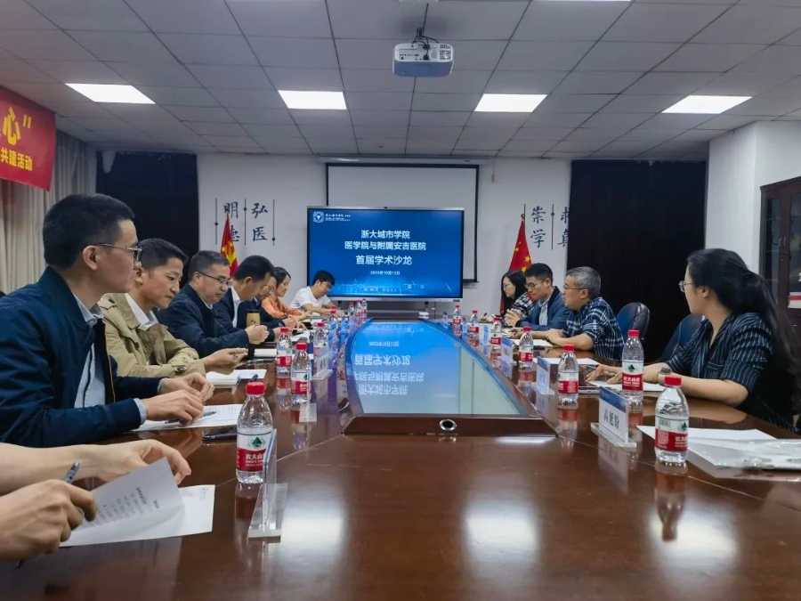 为深入推进校院合作,共谋双赢发展,10月13日,医学院与附属安吉医院举办首届学术沙龙,共同探讨衰老性疾病的基础研究与临床问题。会议由医学院党委委员、副院长张翀主持,医学院附属安吉医院党委副书记、院长宁建文,副院长朱求亮,党委副书记周华俊,各科室主任和医学院学术骨干教师参加了此次学术交流。