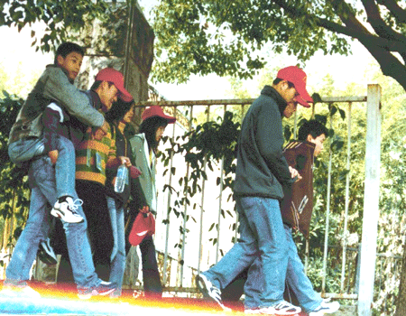 11月30日星期日,城市学院工程分院组织了一次“爱心教育援助志愿者行动”,带领杭州福利院的儿童去“未来世界”参观、游玩,获得到了一个锻炼和献爱心的机会。同学们说:“孩子们的笑容给了我们最大的鼓舞,是我们最大的收获!”图为志愿者江同学甘愿做双脚残疾的小阮的双脚,背着他走了大半路程。