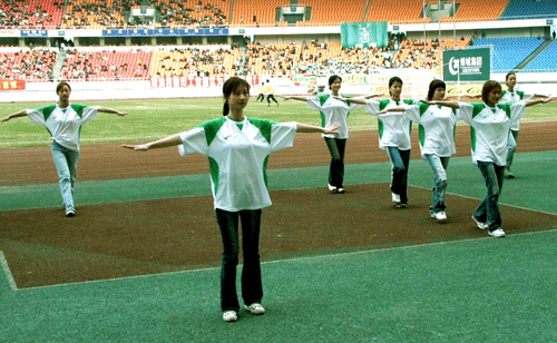 3月28日,浙江绿城足球俱乐部在黄龙体育中心迎来中甲第一个主场比赛。除了城市学院管理分院张成柱同学作为绿魂的一员在现场呐喊助威,城市学院的足球宝贝们也在入口处和球场中央上演了一场激情广场秀。